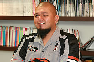 まだ学生だった10代のころ、現在の愛車であるFXSTBソフテイル・ナイトトレインを手に入れたのがハーレーとのなれそめ。ディーラーメカニックとして地元仙台で7年間勤め上げた後、アメリカに渡り、単身アリゾナ州で本場の技術と雰囲気を吸収。その後、再び日本に戻り、現在の肩書きは、ハーレーダビッドソンシティ川越店のサービスフロントだ。通常の修理やメンテナンスのほかに、エンジンチューニングも得意とする。「最新のハーレーの魅力を伝えたい」というポリシーに基づいたユーザーとのコミュニケーション能力は、他のスタッフからも高く評価されている。
